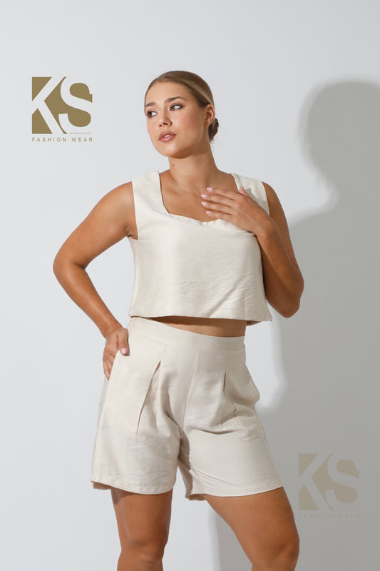 Tank Top & Flared Shorts Set - Beige