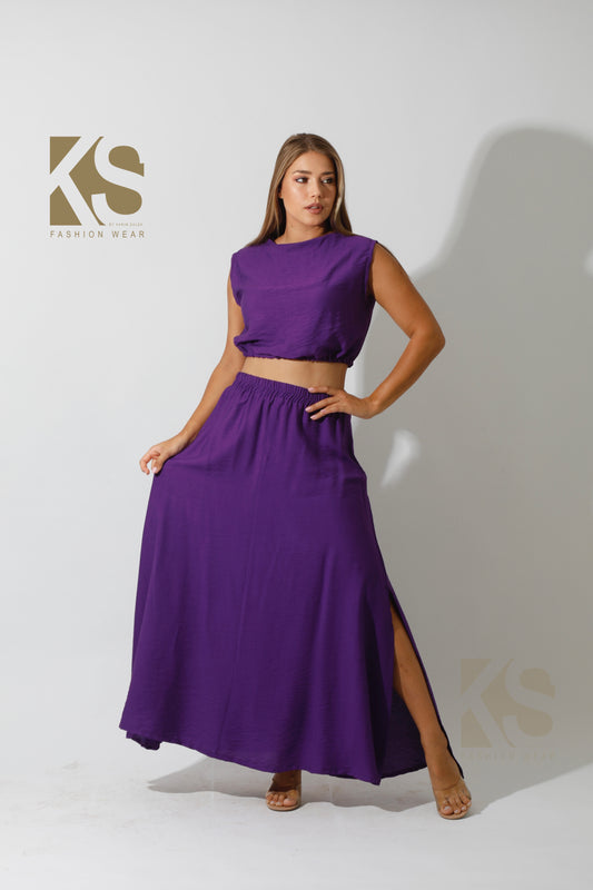 Co-Ord Maxi Side Slite Skirt - Purple