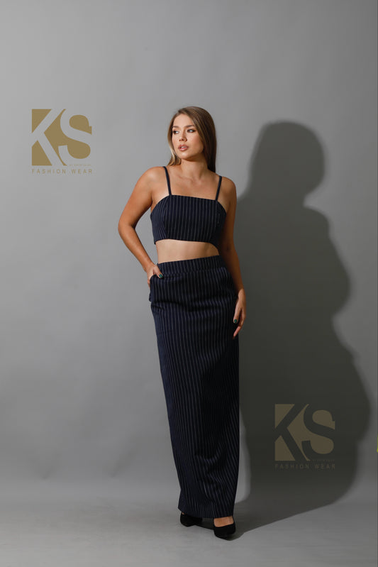 Striped Maxi Skirt Co-Ord - Navy
