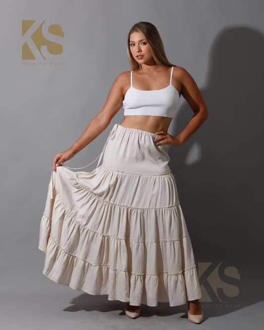 Tied Up Ruffle Skirt - Beige