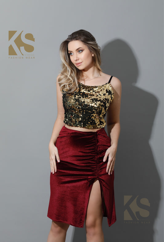 Front Slit Skirt - Maroon