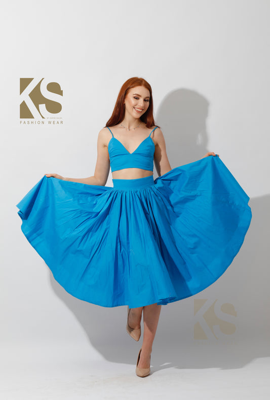 Co-Ord Flared Skirt - Blue