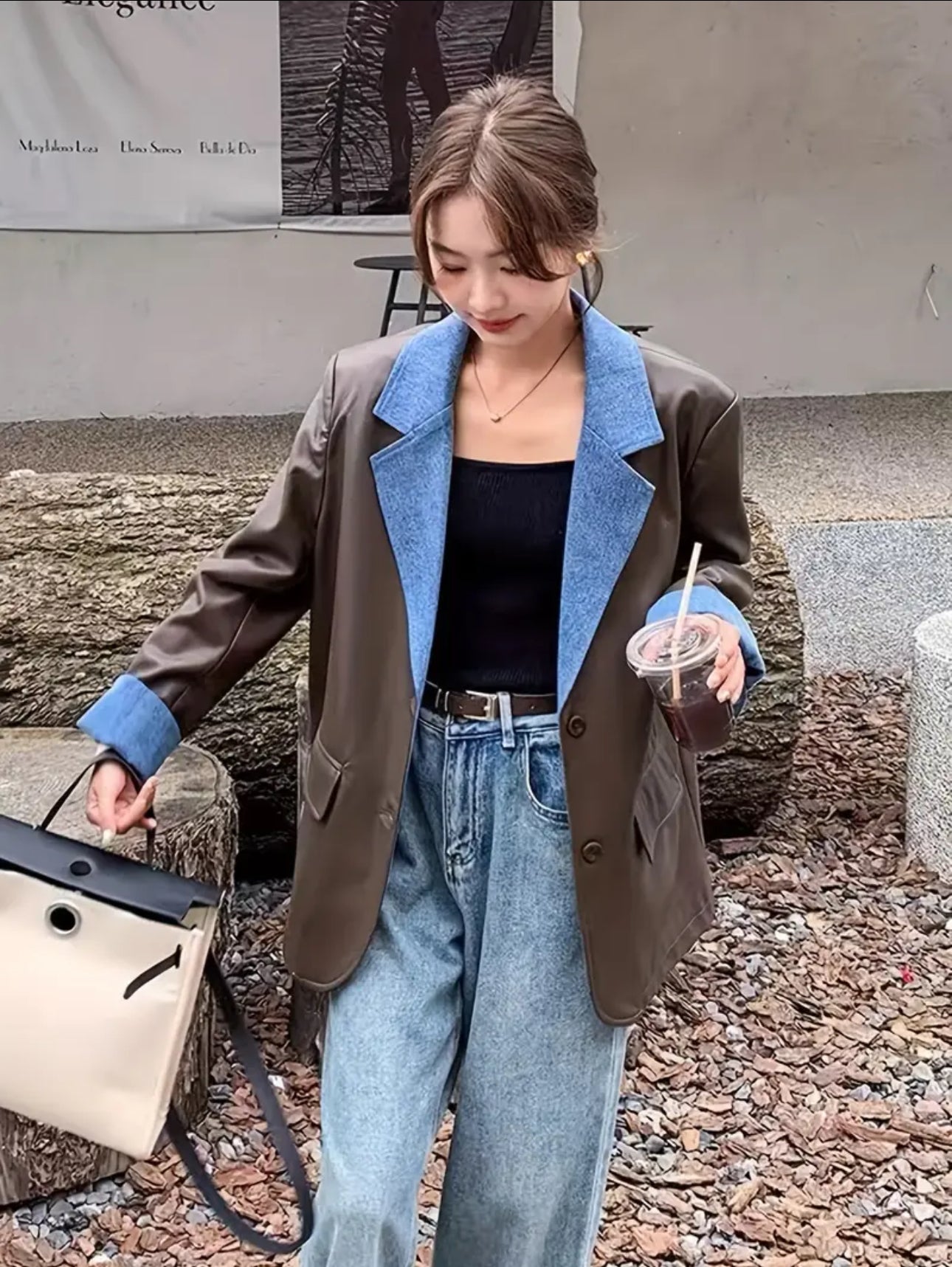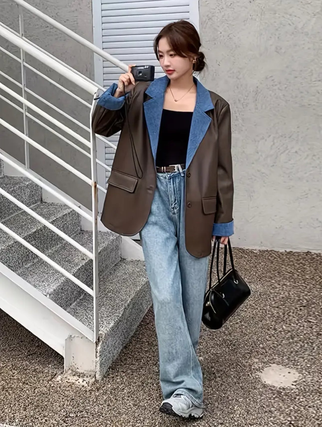 Patricia Leather Denim Patchwork Blazer - Brown
