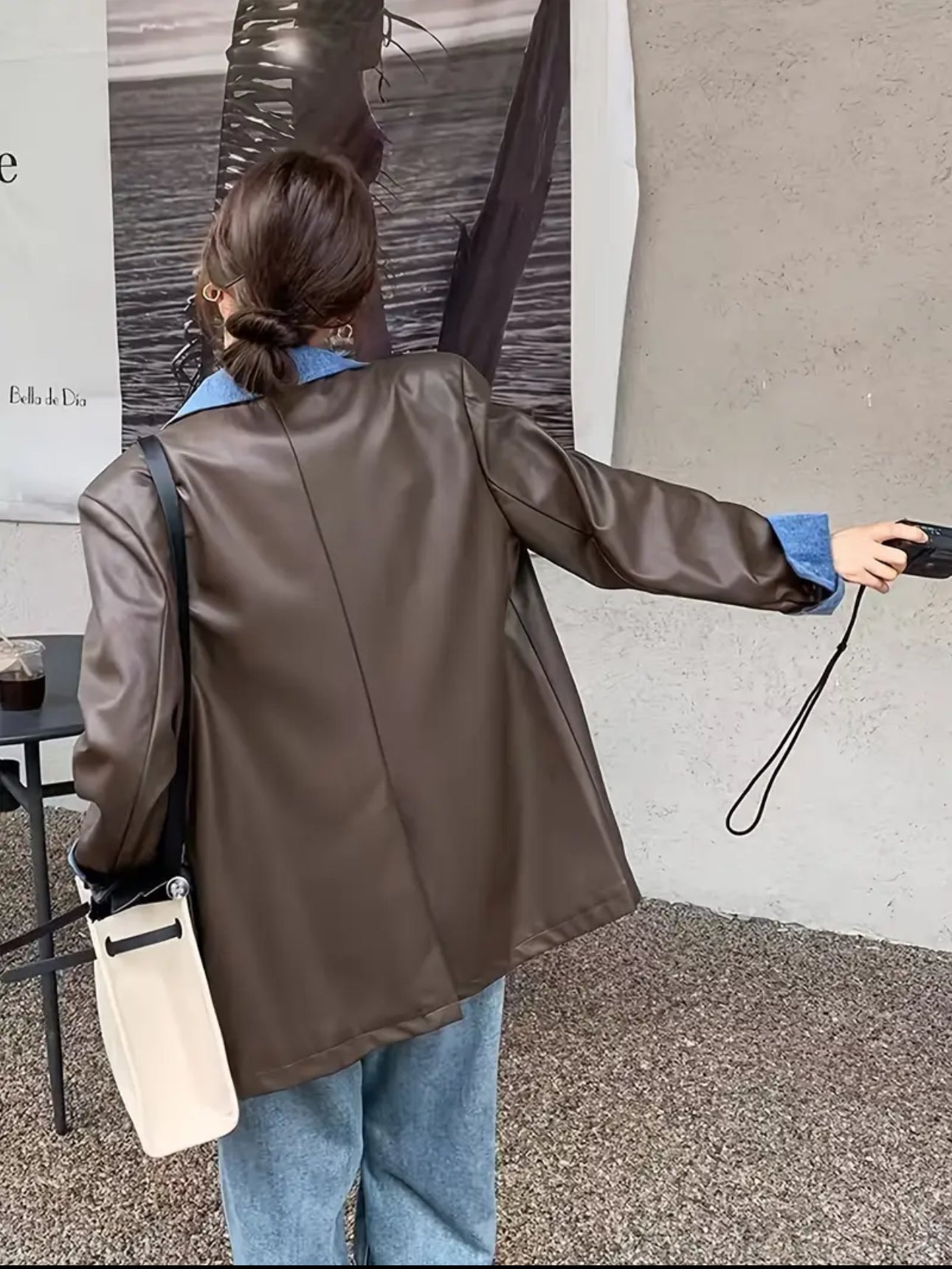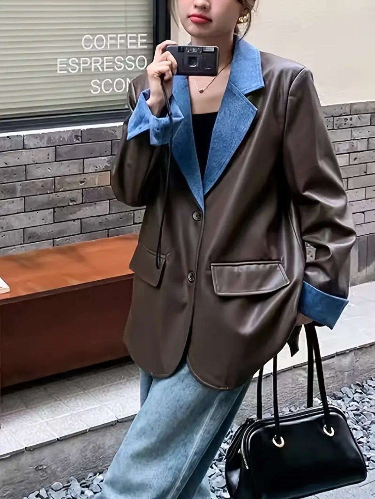 FauxLeather Patricia Leather Denim Patchwork Blazer - Brown