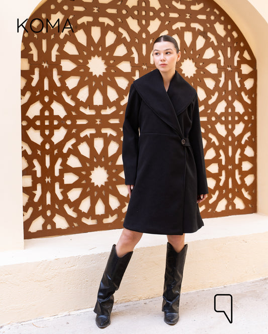 Arlette Short Halter Wrapped Coat - Black