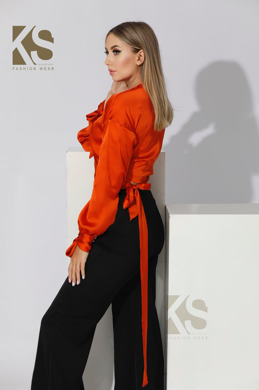 Wrap Tie Blouse - Orange