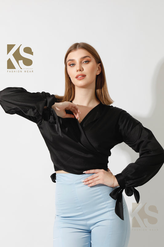 Wrap Tie Blouse - Black