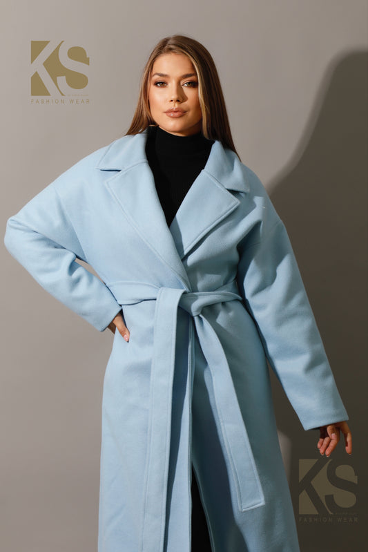 Oversized Wrapped Coat - Babe Blue