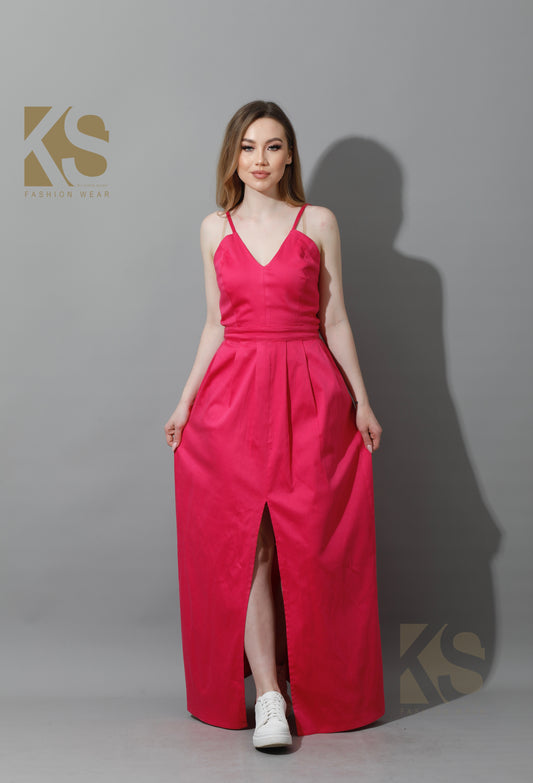 Front Long Slit Dress - Barbie Pink