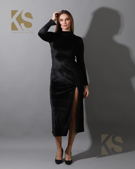 Front Slit Midi Dress - Black
