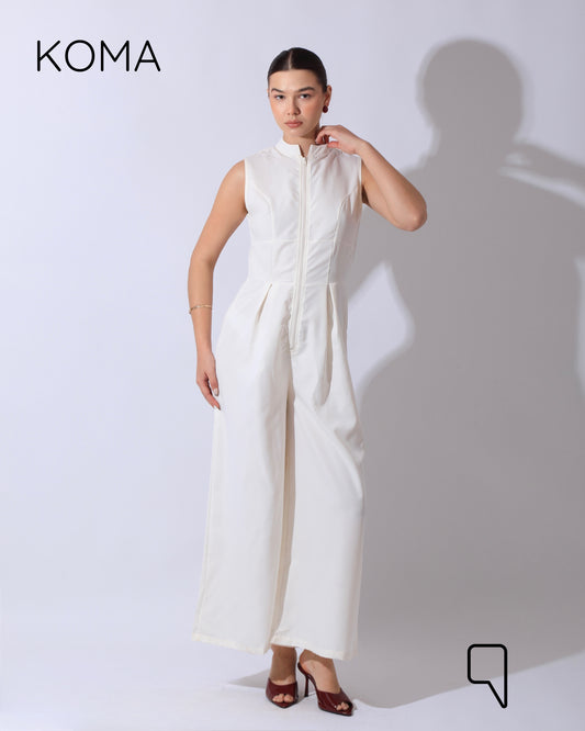 Olivia Sleeveless Wide Leg Jumpsuit - Offwhite