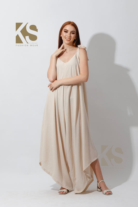 Tied Up Lose Jumpsuit - Beige