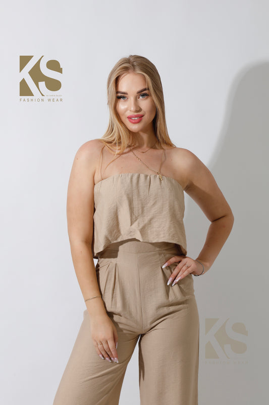 Wide Leg Jumpsuit - Beige
