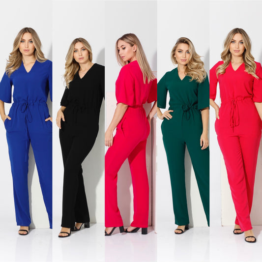 Half sleeves Jumpsuit - Red