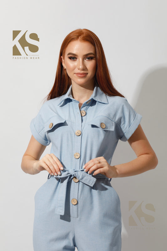 Buttons Jeans Jumpsuit - Light Blue