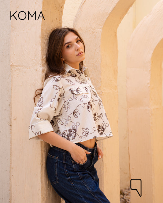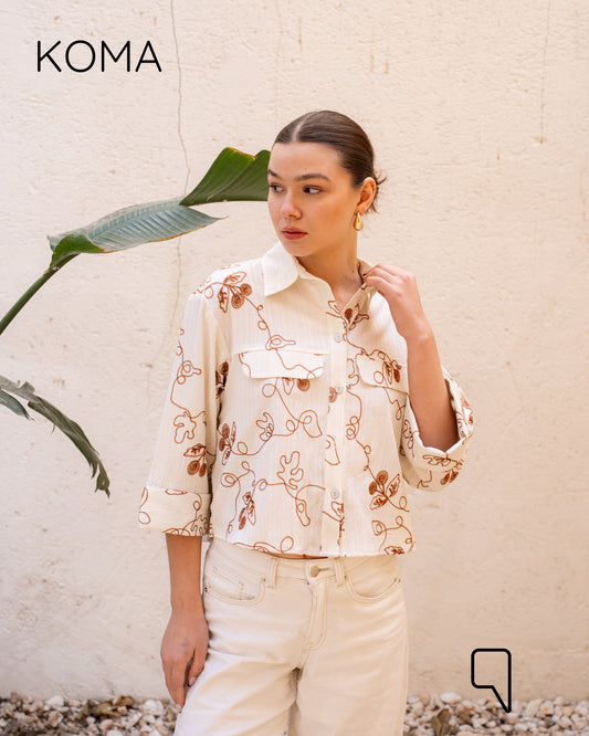 Paloma Textured Embroidered Blend Shirt - Brown