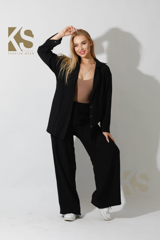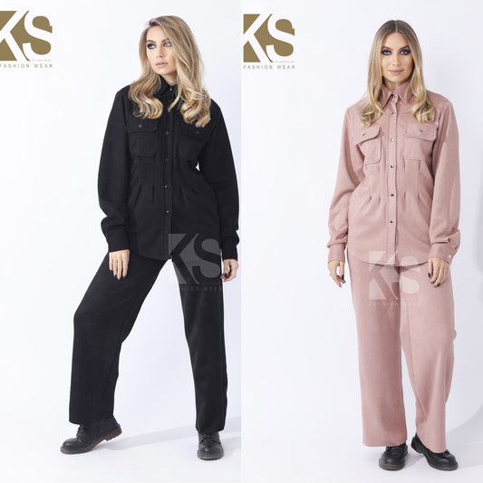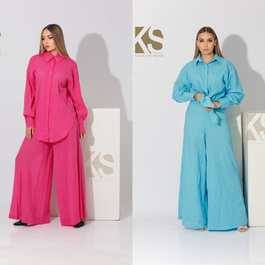 Co-Ord Wide Leg trousers & Lose Shirt Striped - Striped Pink