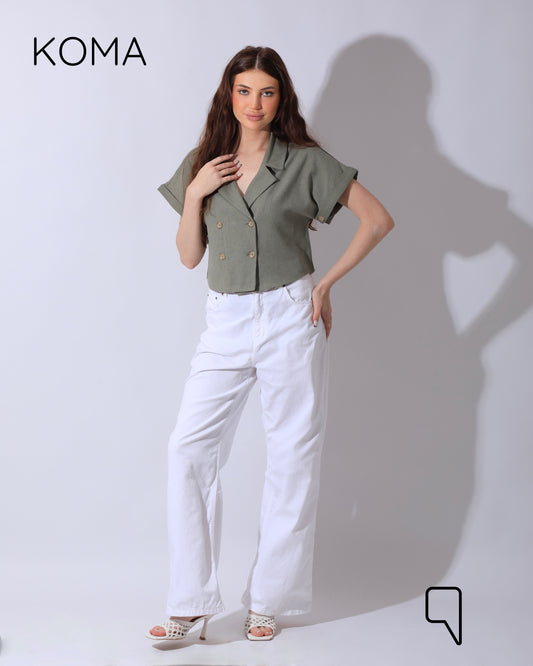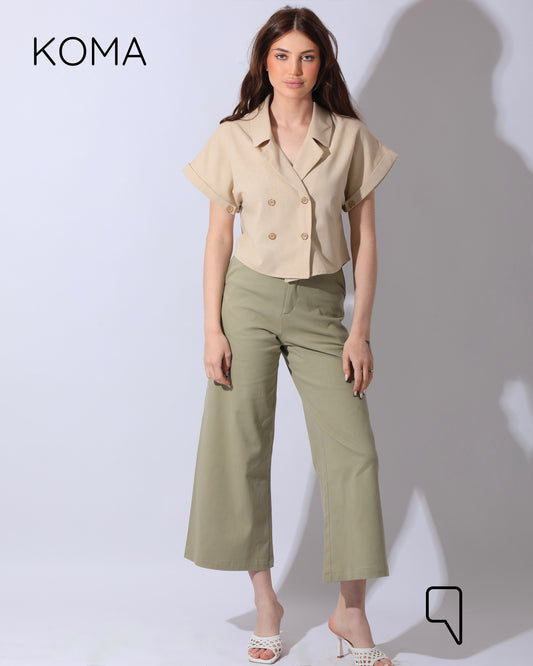 Leilani Stitched Shirt & Straight Trousers Set - Black