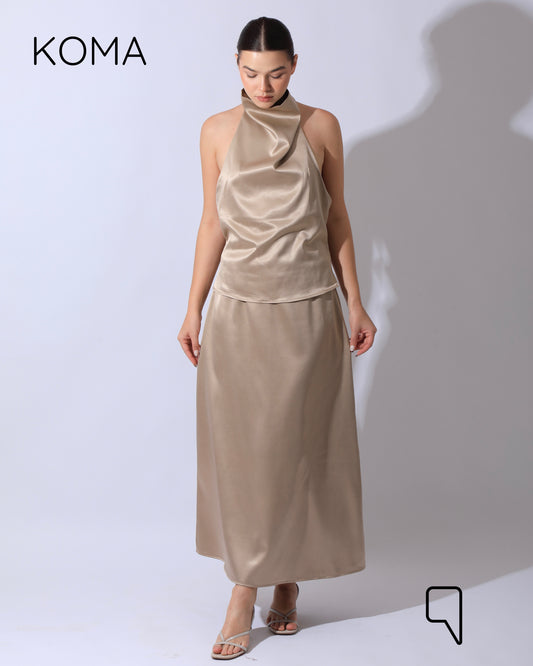 Violet Satin Midi Skirt - Beige