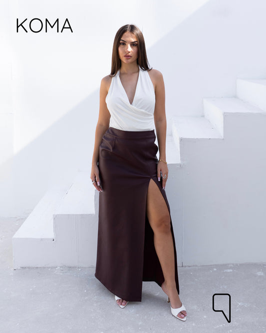 Leather Front Slit Skirt - Brown