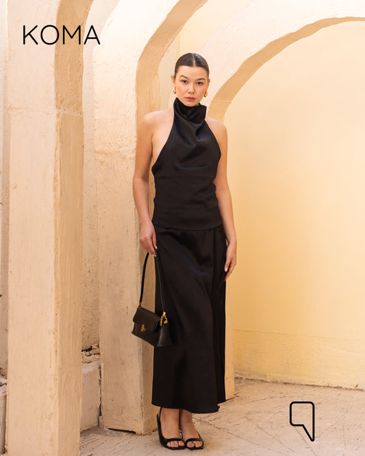 Violet Satin Midi Skirt - Black