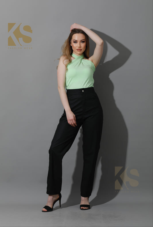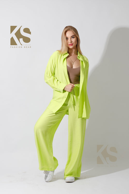 Co-Ord Front Slit Top & Trousers - kiwi Green
