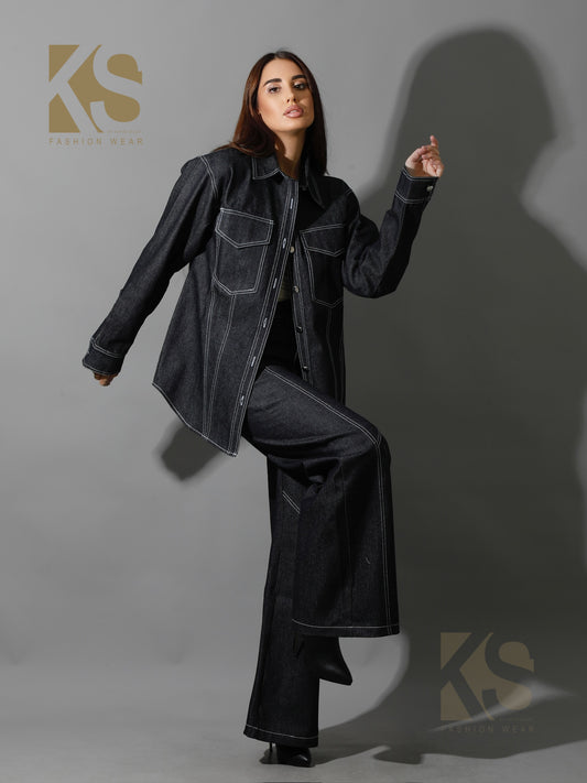 Co-Ord Some Protel Top & BootCut pants - Black