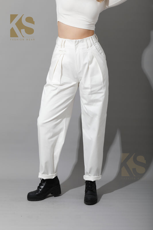 High Waist Trousers - White