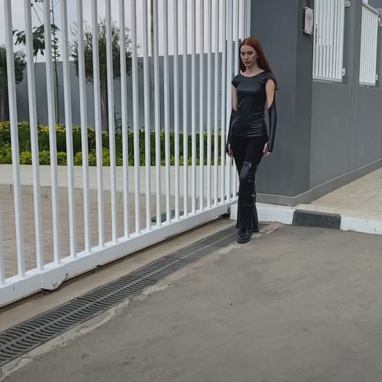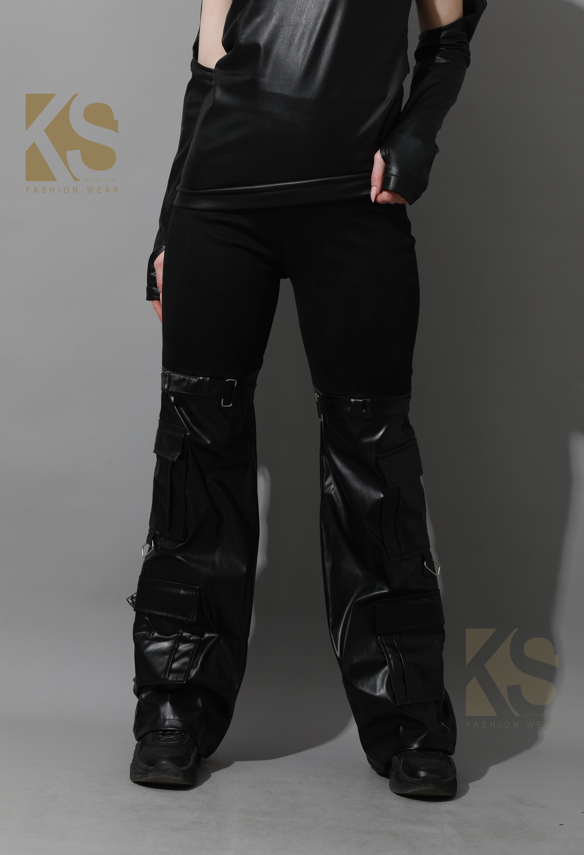 Faux Leather and Swede Baggy Trousers - Black