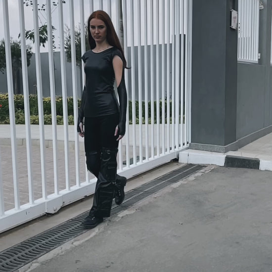 Leather Baggy Trousers - Black