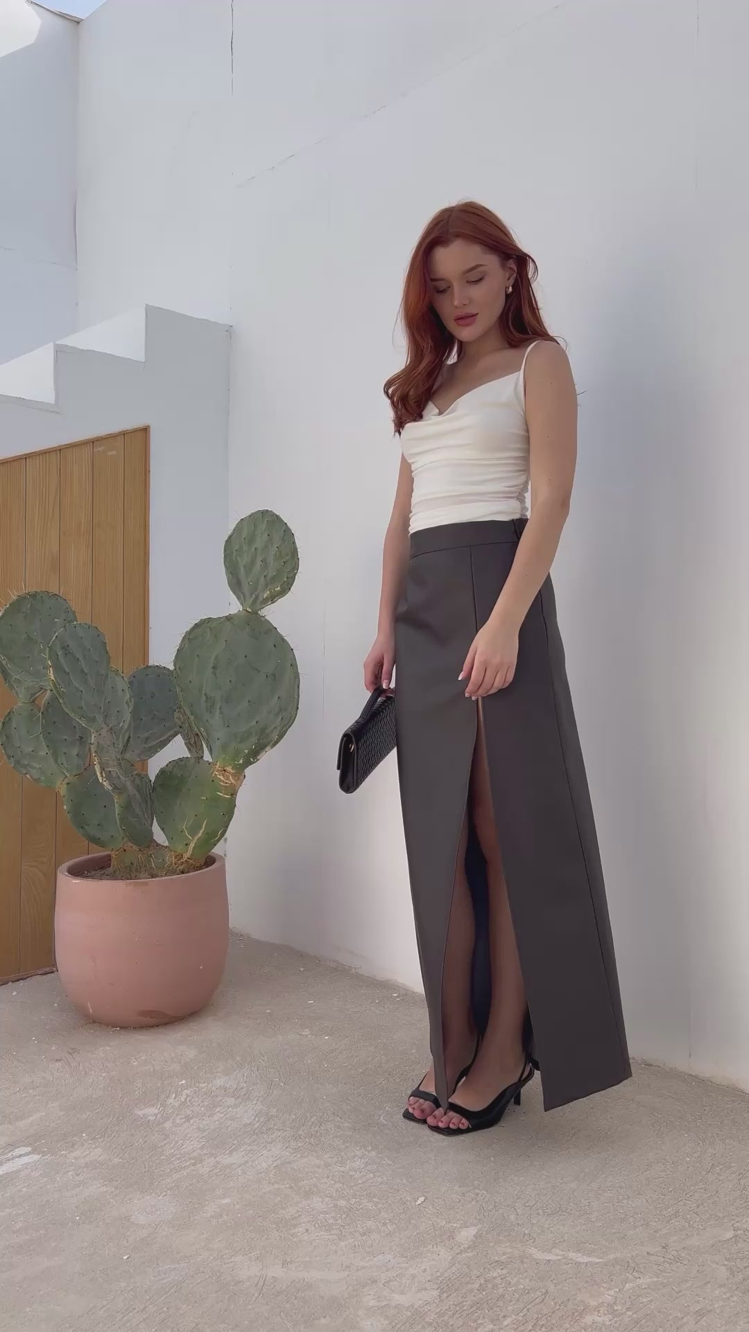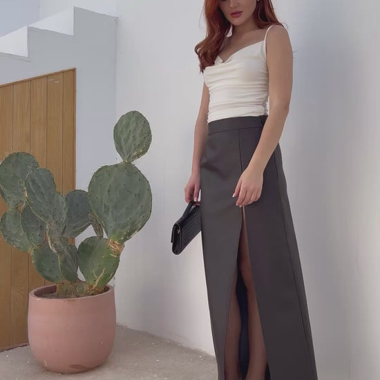 Leather Front Slit Skirt - Brown