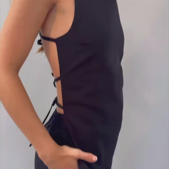 Pure linen Liana Cress Cross Top - Black
