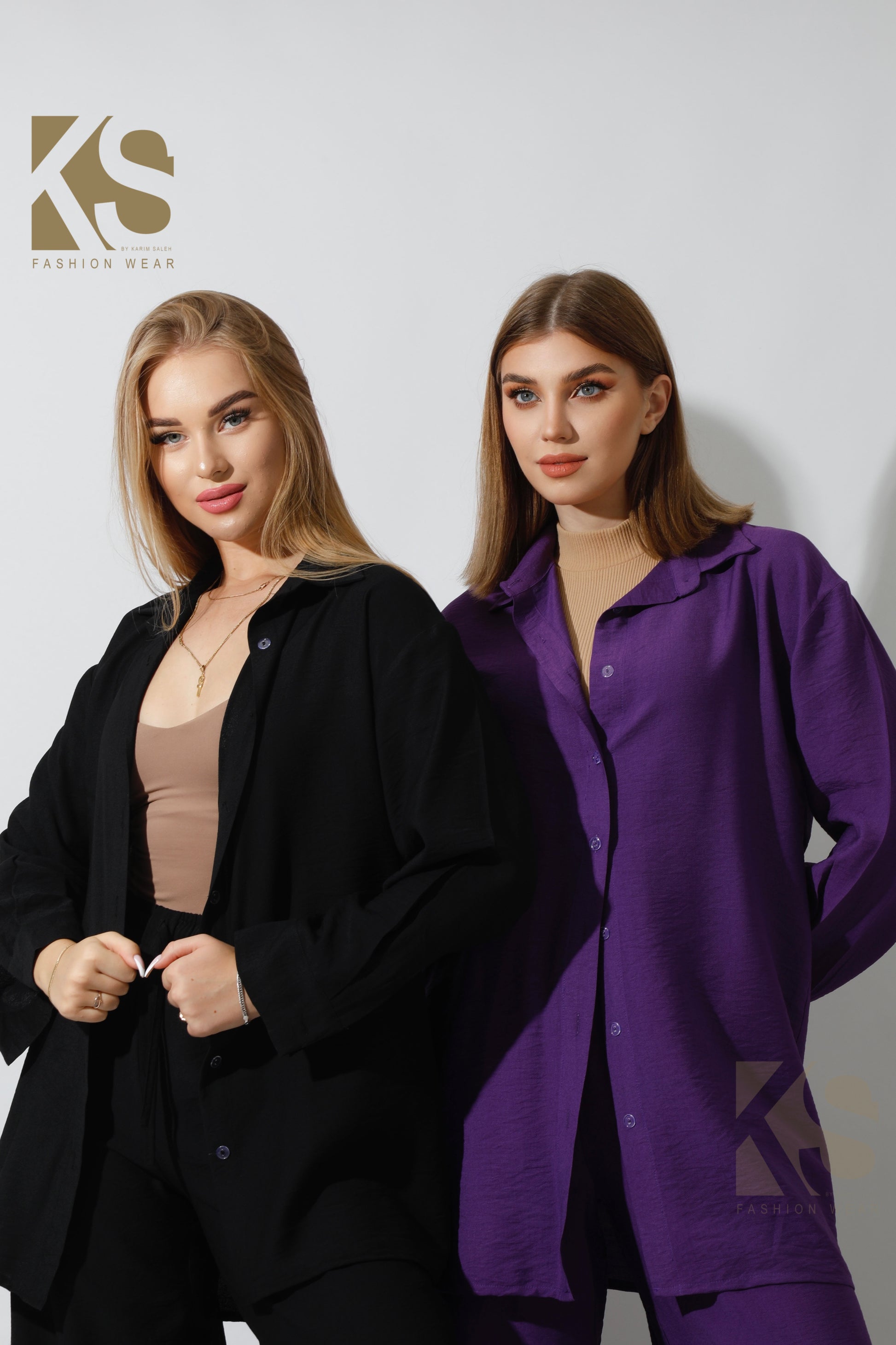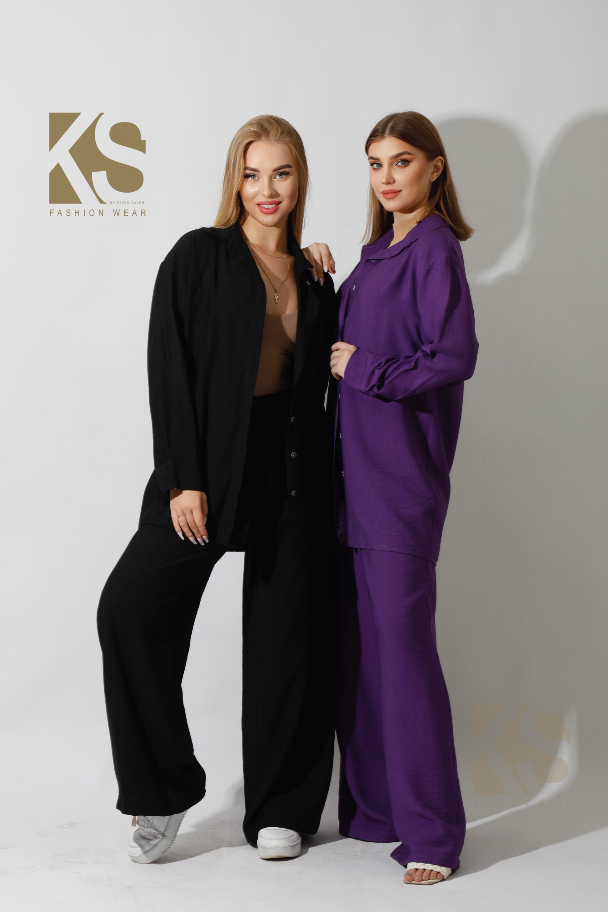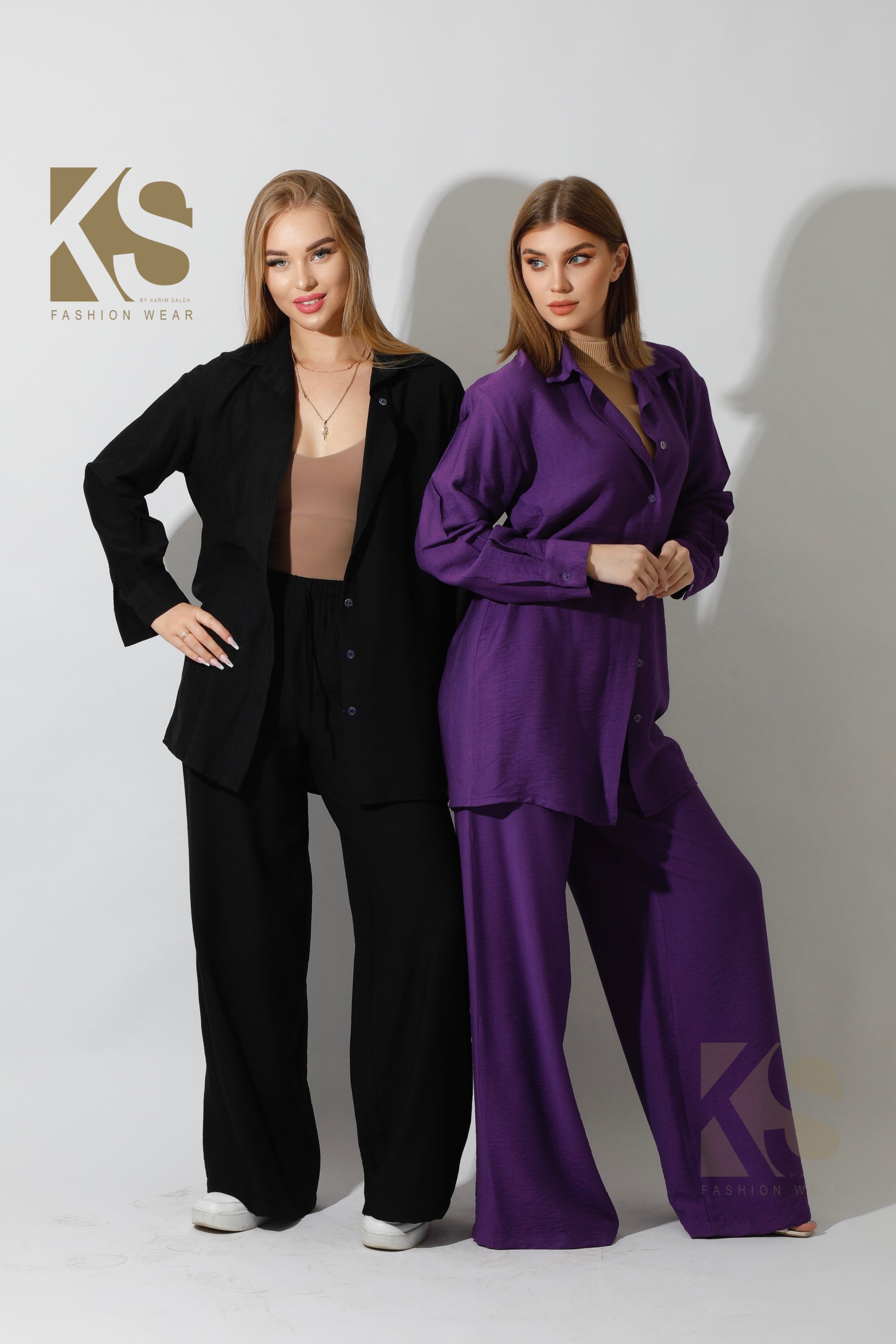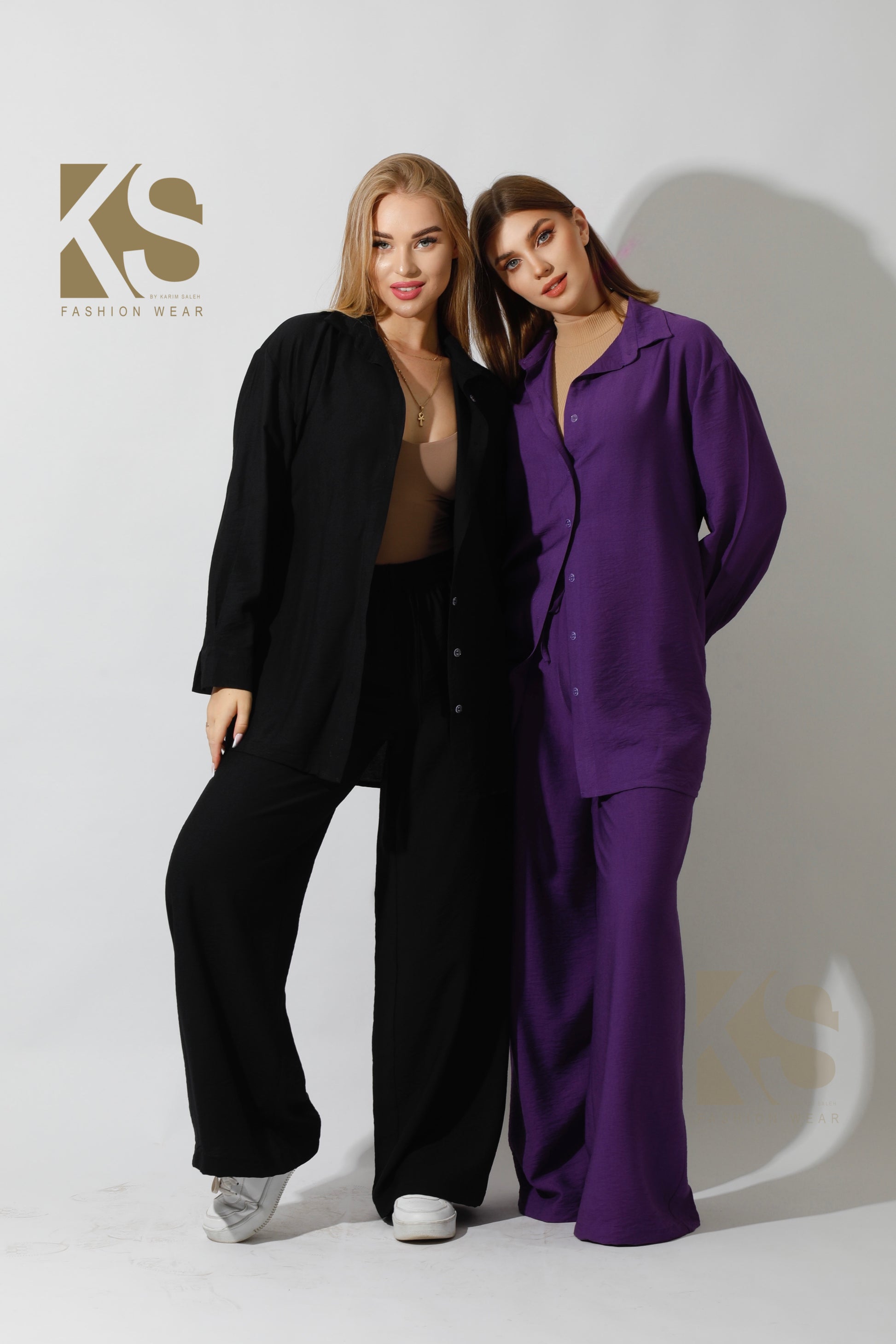 Co-Ord Long Sleeve Shirt & Wide Leg Trousers - Black