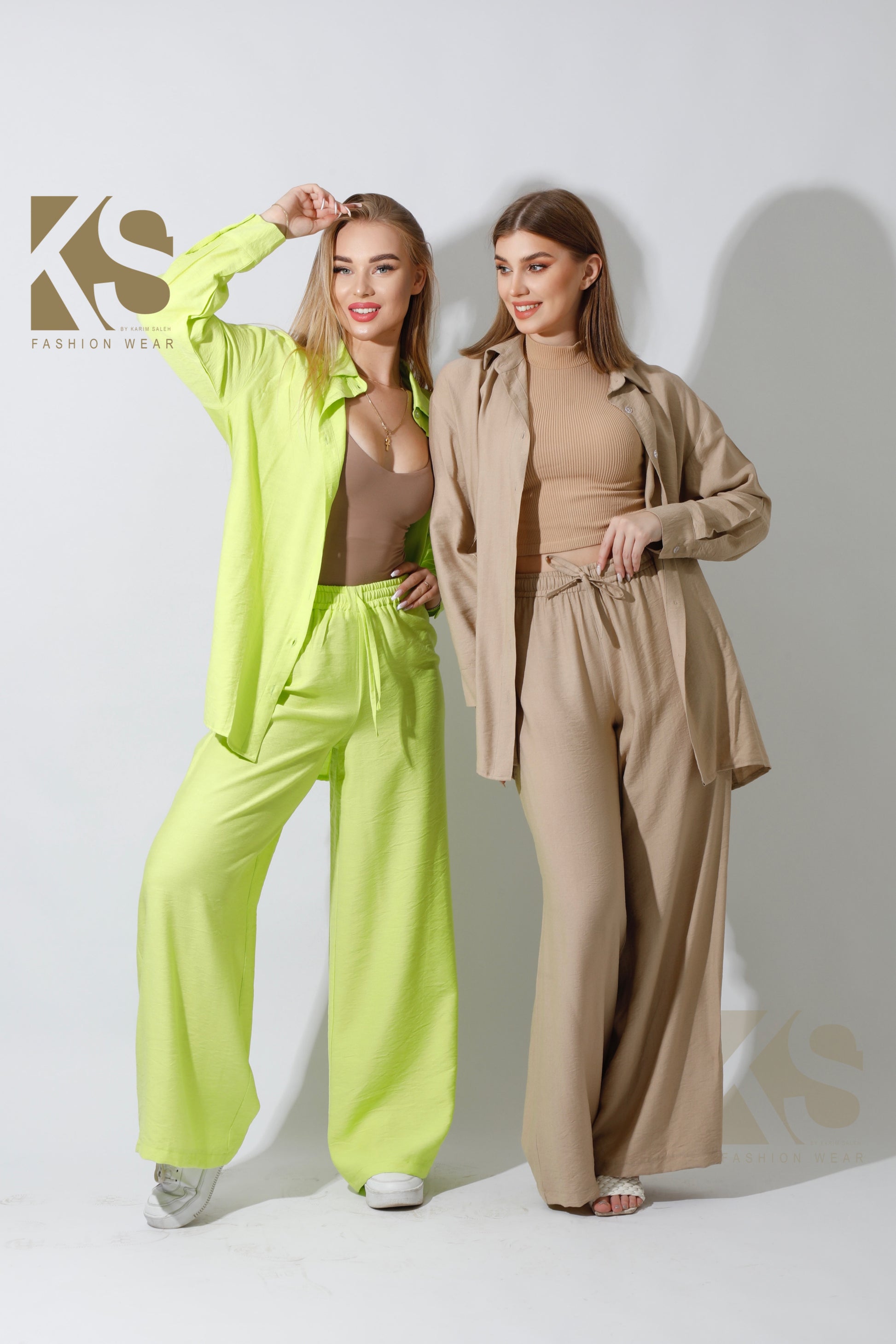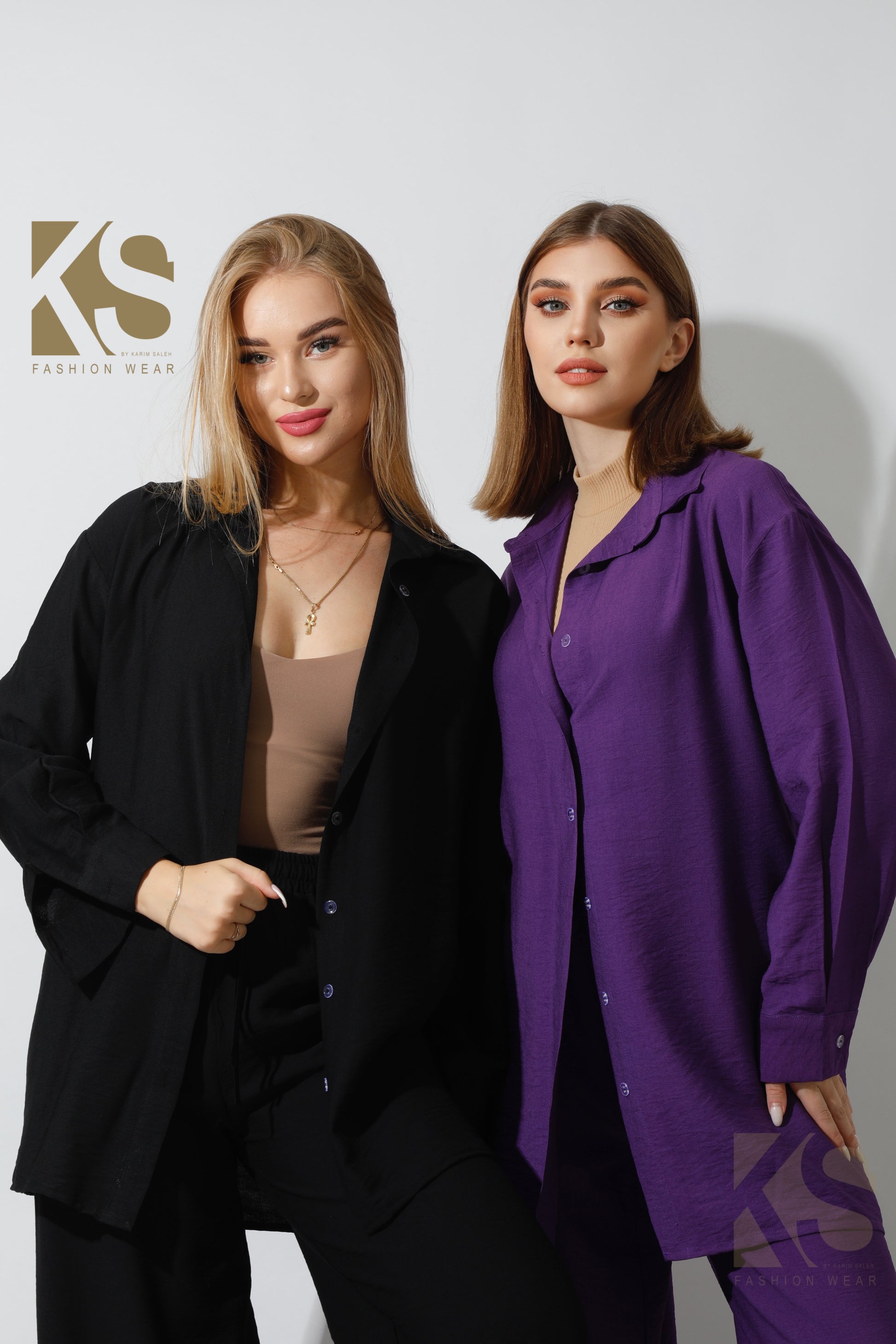 Spanish Lenin Co-Ord Long Sleeve Shirt & Wide Leg Trousers - Black
