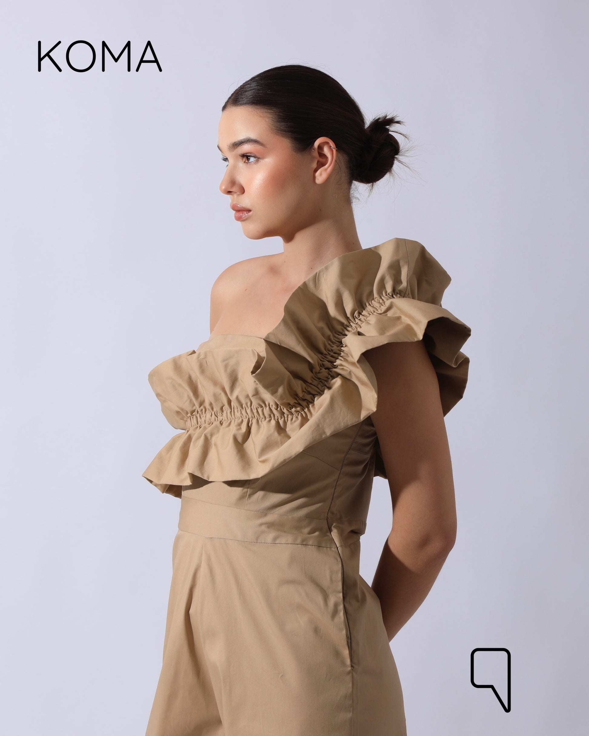 Marta Asymmetric Ruffle Jumpsuit - Beige