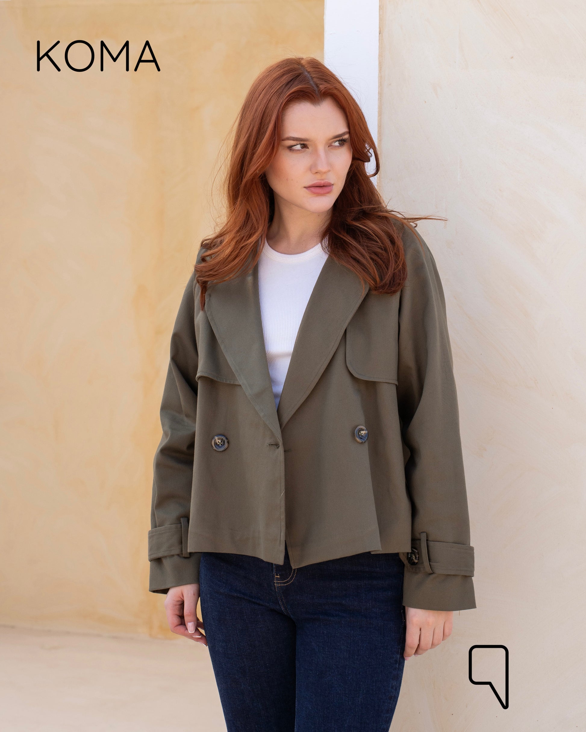 Gabardine Rochelle Lose Trench Jacket - Olive