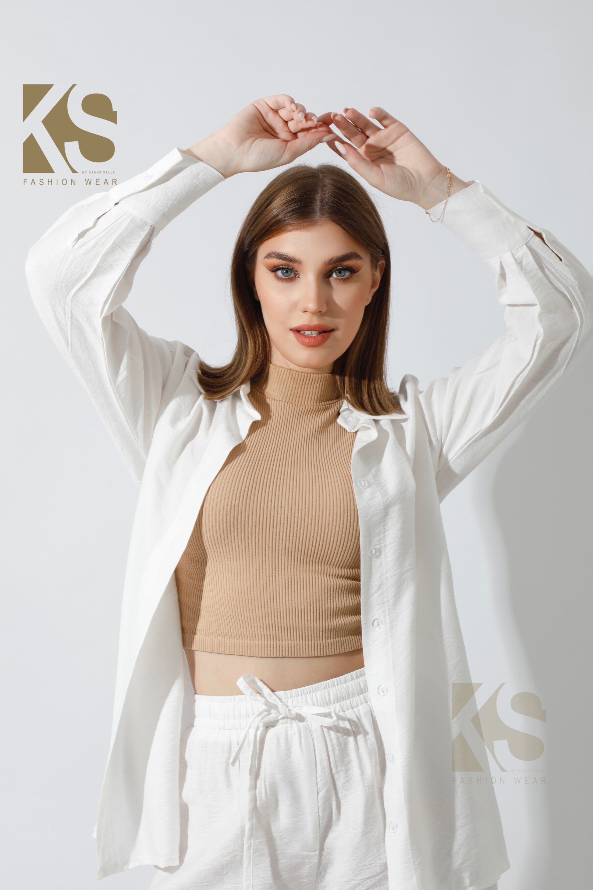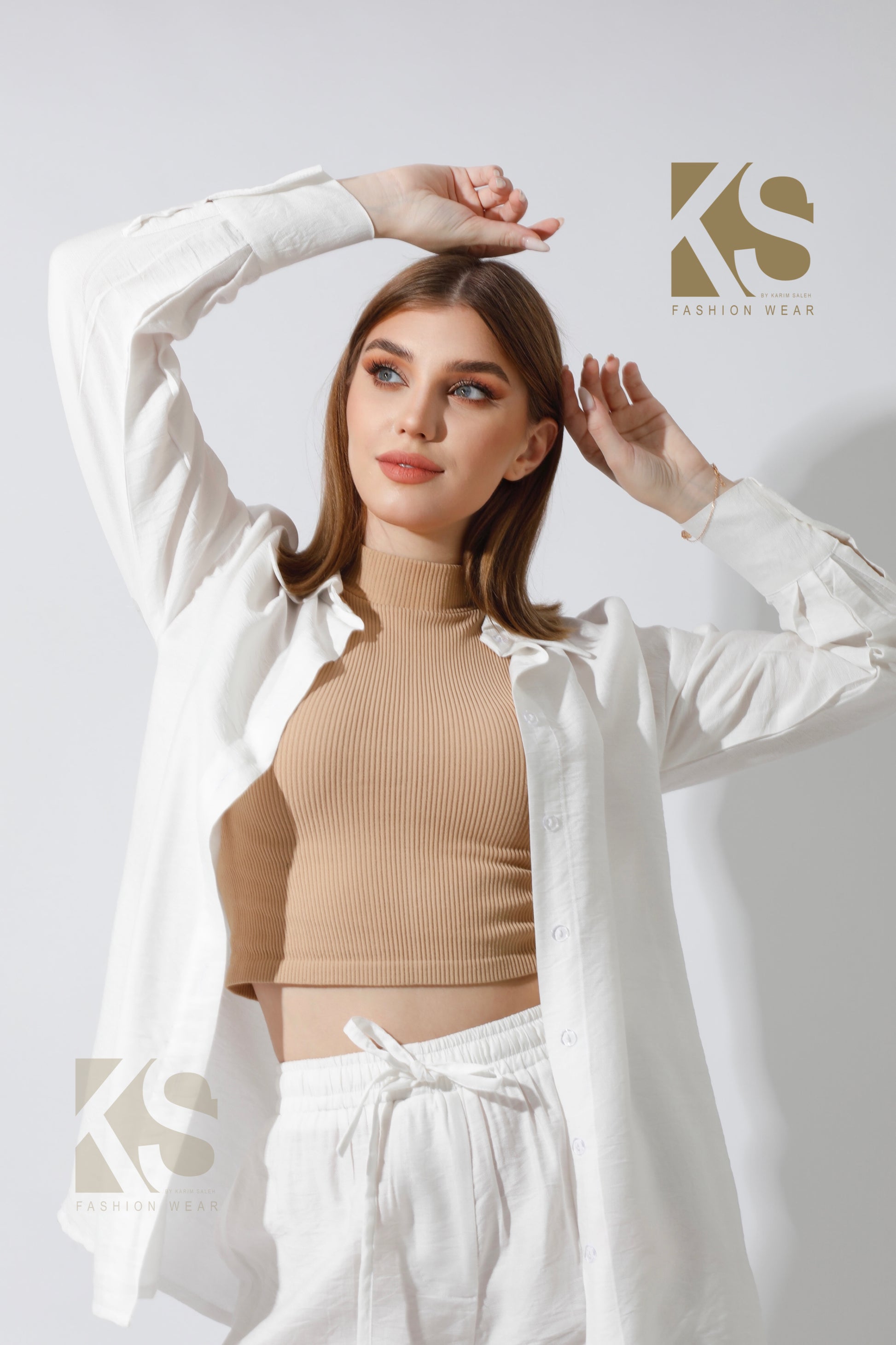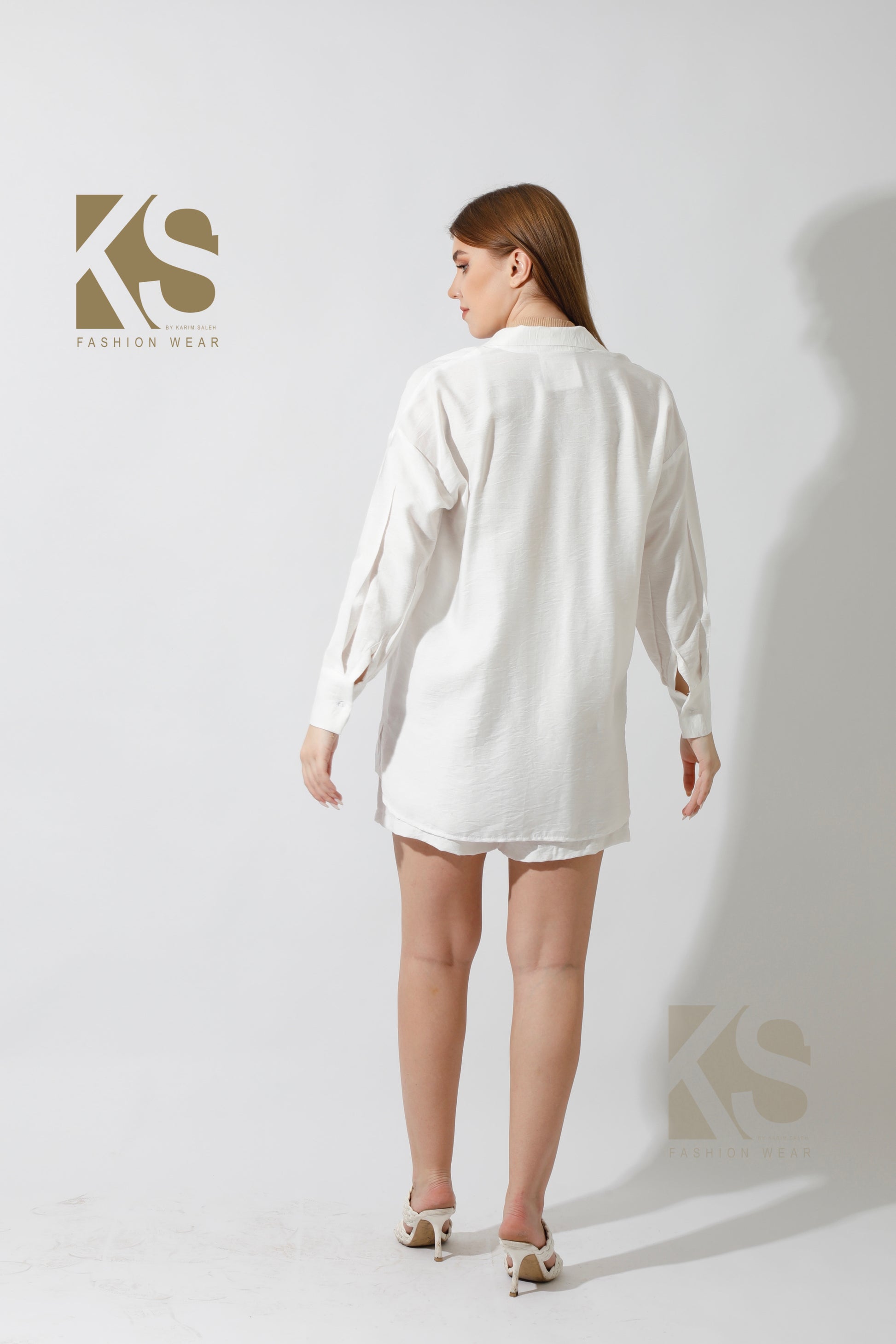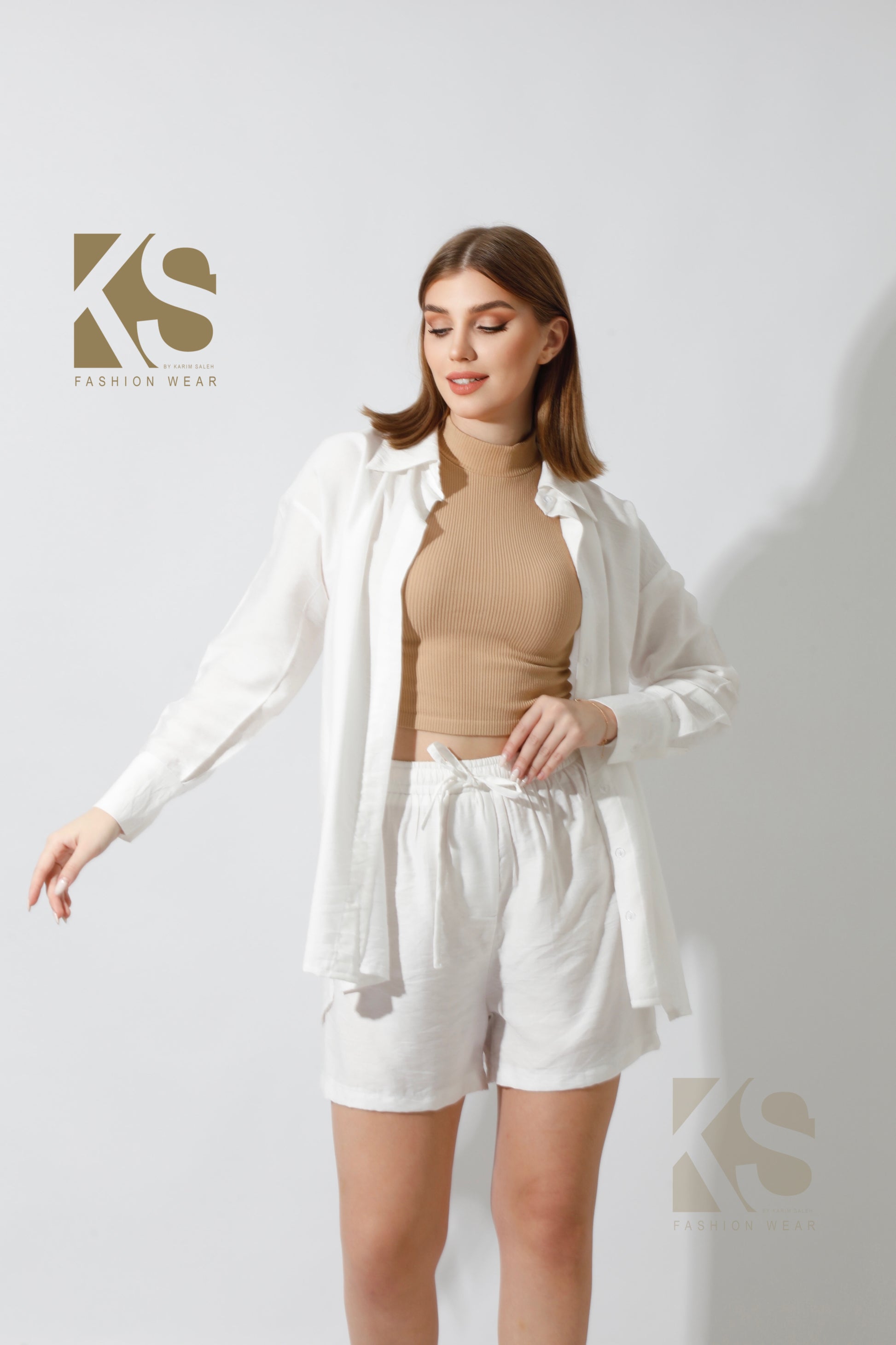 Spanish Lenin Lose Fit Shirt & Shorts Set - White