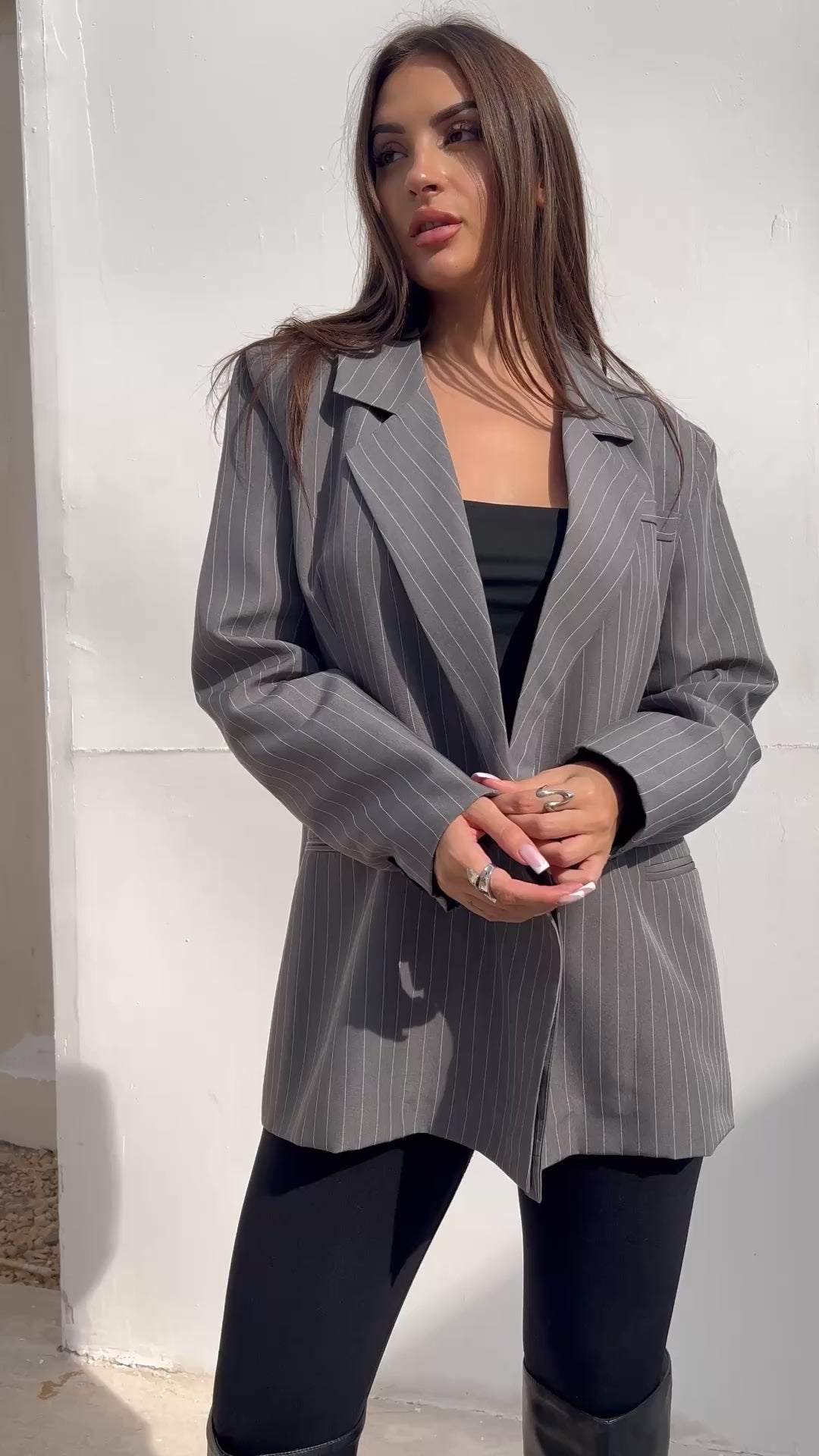 Striped Oversized Blazer - Gray