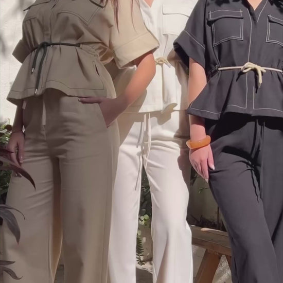 Leilani Stitched Shirt & Straight Trousers Set - White